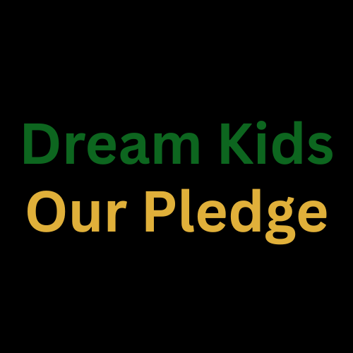 Text reading "Dream Kids Scholarship" with "Dream Kids" in green and "Scholarship" in yellow on a black background.